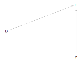 ] .date[ ### April 9 and 14, 2026 ] --- class: center, middle --- ### Why Regression? From Experiments to Observational Studies - In an experiment, random assignment ensures that treatment is independent of potential outcomes. - In observational data, we worry that treated and control units differ on other characteristics (confounders). - Regression attempts to **adjust for those differences** by holding confounders constant. --- ### The Intuition: Adjusting for a Confounder ``` r lm_biased <- lm(Stateterrorism ~ TrumpShare, data = election2016) coef(lm_biased)["TrumpShare"] ``` ``` ## TrumpShare ## -0.2110919 ``` ``` r # Adjust for past election and Turnout lm_adjusted <- lm(Stateterrorism ~ TrumpShare + Turnout16 + Turnout12 + D12Margin, data = election2016) coef(lm_adjusted)["TrumpShare"] ``` ``` ## TrumpShare ## 0.02730885 ``` --- - The coefficient changes because we are now comparing treated and control units having subtracted off the estimated effects of turnout and electoral history. - This is the core idea: **control for confounders to mimic randomization**. --- ### When Does This Work? The Key Assumption **Unconfoundedness (selection on observables)** \[ D_i \perp (Y_i(0), Y_i(1)) \mid X_i \] --- - Conditional on observed covariates \(X\), treatment is as good as randomly assigned. - This means: no unmeasured confounders that affect both treatment and outcome. --- **Overlap / Common Support** For every value of \(X\), there must be both treated and control units. --- ### Visualizing Confounding with DAGs ``` ## Warning: package 'dagitty' was built under R version 4.5.3 ``` <!-- --> --- - \(X\) is a confounder: it affects both treatment \(D\) and outcome \(Y\). - Controlling for \(X\) blocks the backdoor path \(D \leftarrow X \rightarrow Y\). - This gives us the causal effect of \(D\) on \(Y\). --- ### What Does "Controlling For" Mean? - Intuitively: we are asking what the relationship between treatment and outcome would be if age were held constant. - Mathematically: regression uses the variation in treatment that is **not explained by age** to estimate the effect. **Key idea**: Including a confounder removes its influence from both treatment and outcome, reducing bias. --- ### When Is a Variable a Confounder? A confounder is a variable that: 1. Affects the treatment, 2. Affects the outcome, 3. Is not itself affected by the treatment. We can represent this with a **Directed Acyclic Graph (DAG)**. --- ### DAG: A Simple Confounder <!-- --> --- - `\(X\)` (age) influences both treatment `\(D\)` and outcome `\(Y\)`. - This opens a **backdoor path** `\(D \leftarrow X \rightarrow Y\)`. - Controlling for `\(X\)` **blocks** this path, giving us the direct effect `\(D \rightarrow Y\)`. --- ### Good Controls: Block Backdoor Paths Any variable that lies on a backdoor path from `\(D\)` to `\(Y\)` and is not itself a descendant of `\(D\)` is a **good control**. Example from the terrorism study: `past turnout` and `voting history` are plausible confounders – they might affect both vote choice in 2016 and subsequent terrorism. --- ### Bad Controls: Mediators <!-- --> --- - `\(M\)` is a **mediator**: it lies on the causal path from `\(D\)` to `\(Y\)`. - Controlling for `\(M\)` would **block part of the causal effect** we want to estimate. - This is a form of **overcontrol bias**. In the Peru study, if `enojado` (anger) is a mediator, we should **not** control for it when estimating the total effect of `simpletreat` on voting. --- ### Bad Controls: Colliders <!-- --> --- - `\(C\)` is a **collider**: it is caused by both `\(D\)` and `\(Y\)`. - Conditioning on a collider **opens a non‑causal path** `\(D \rightarrow C \leftarrow Y\)`, creating **selection bias**. --- Example: if we control for a variable that is itself affected by treatment and outcome (e.g., turnout in 2020 in the terrorism example), we can introduce bias. --- ### Bad Controls: Post‑Treatment Variables Any variable that is caused by the treatment is **post‑treatment**. Controlling for such a variable can: - Block part of the causal effect (if it is a mediator), - Create collider bias (if it is also affected by other factors), - Generally lead to incorrect estimates. --- **Rule of thumb**: Only control for variables measured **before** treatment. --- ### Translating DAGs to Regression Practice When building a regression model for causal inference: 1. **List all potential confounders** – variables that affect both treatment and outcome. 2. **Draw a DAG** (even informally) to check for backdoor paths. 3. **Do not control for mediators or colliders**. 4. **Do not control for post‑treatment variables**. 5. **Include interactions if you suspect heterogeneous effects** (more on this later). --- ### The Problem of Unobserved Confounders We can only control for variables we have measured. If an important confounder is unmeasured, our estimate may still be biased. This is why **sensitivity analysis** is crucial – we need to ask: how strong would an unmeasured confounder have to be to overturn our conclusion? (We will return to this in later weeks.) --- ### Summary: Regression for Causal Inference - Regression can reduce bias by adjusting for confounders. - Use DAGs to decide which variables to control for. - Avoid bad controls: mediators, colliders, post‑treatment variables. - Unobserved confounders remain a threat – be humble. - Heterogeneous effects mean the regression coefficient is a weighted average; explore variation. --- Let's see how this works in practice in an excellent application. --- <img src="images/luputitleauthor.JPG" width="90%" /> --- <img src="images/lupu1.JPG" width="90%" /> --- <img src="images/lupu2.JPG" width="90%" /> --- <img src="images/lupu3.JPG" width="90%" /> --- <img src="images/lupu4.JPG" width="70%" /> --- ``` r library(dagitty) ``` --- Let's assemble a DAG that captures what appears to be the theoretical intuition behind Lupu and Peisahkin's analysis. --- ``` r LupuPeisahkinDAG1 <- dagitty( "
